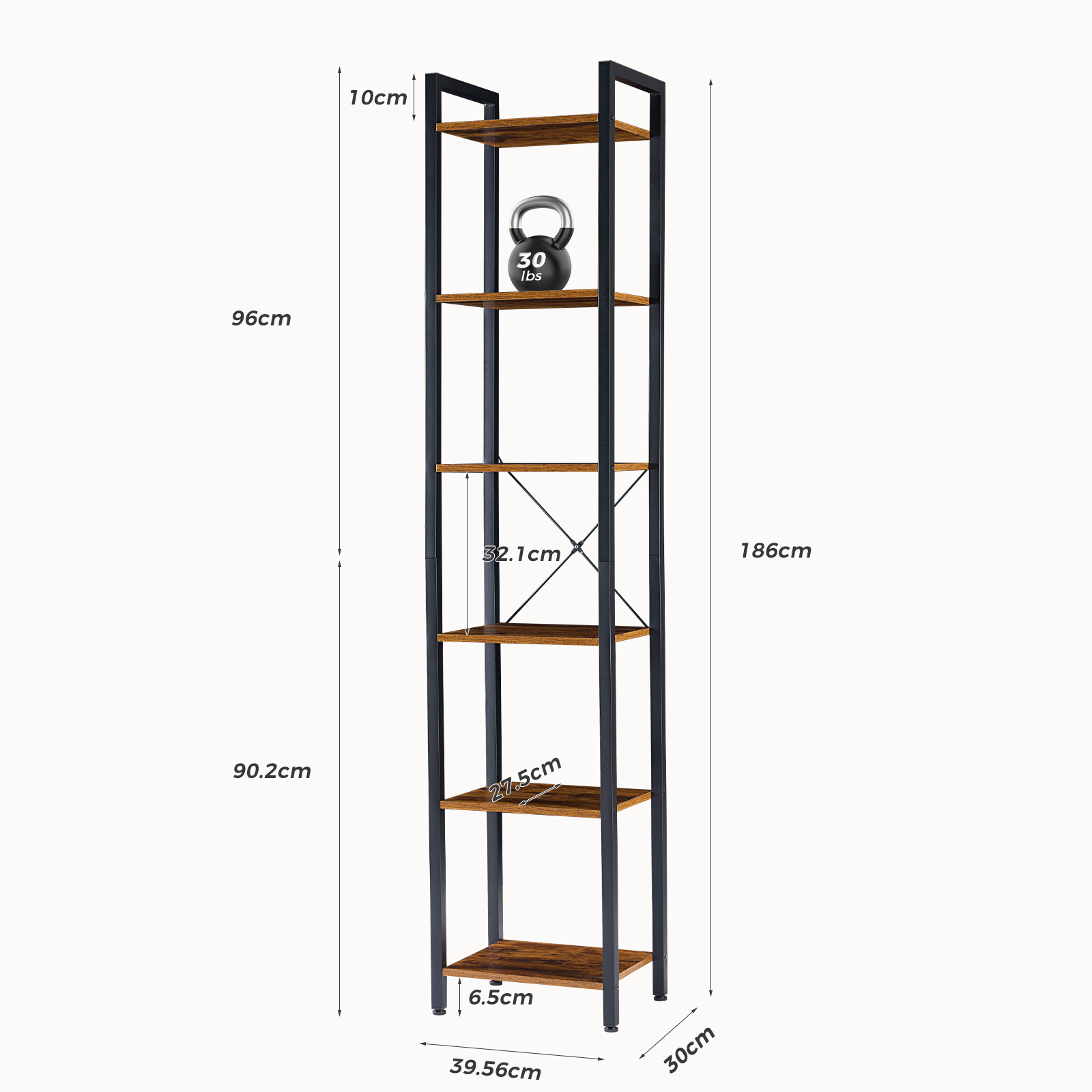 Construcción robusta y duradera: esta estantería estrecha está diseñada para durar. Su robusta estructura de acero y sus travesaños especialmente diseñados brindan soporte adicional, garantizando que la estantería se mantenga estable y segura. Cada estante soporta hasta 13.6 kg, lo que la hace perfecta para libros, artículos decorativos y otros artículos del hogar.