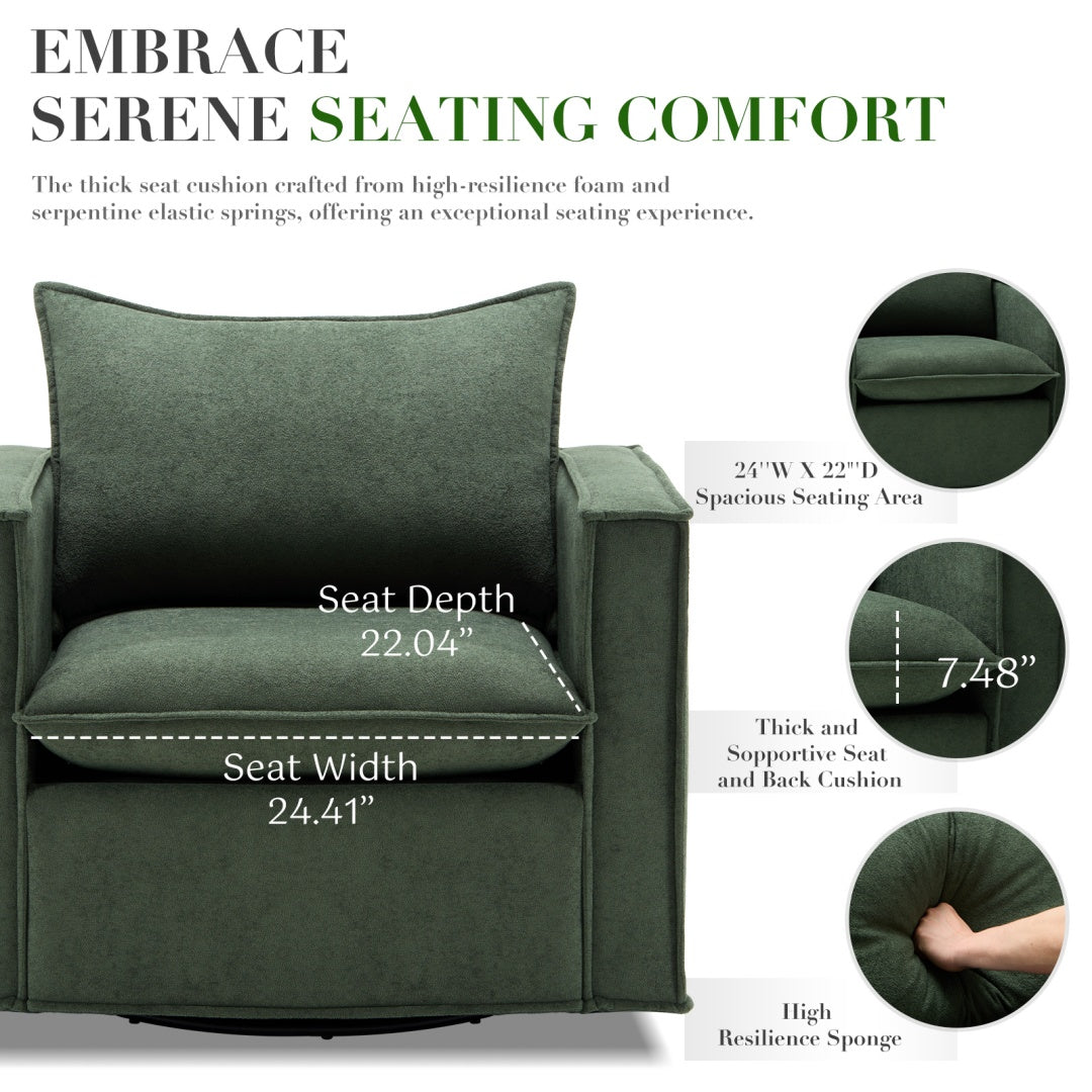 360° Swivel Accent Chair - Upholstered Armchair with Back Support Pillow