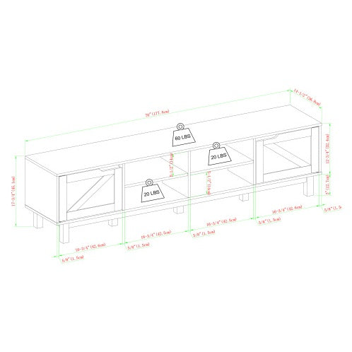 Nombre del producto: Mueble de TV rústico de granero abierto con almacenamiento para televisores de hasta 80 pulgadas – Lavado gris